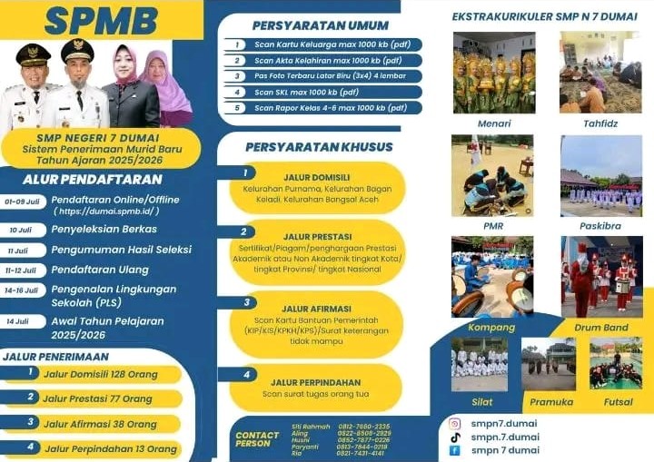 Dumai.relawannews.com – Sistem Penerimaan Murid Baru Di SMPN 7 Dumai. TP 2025-2026