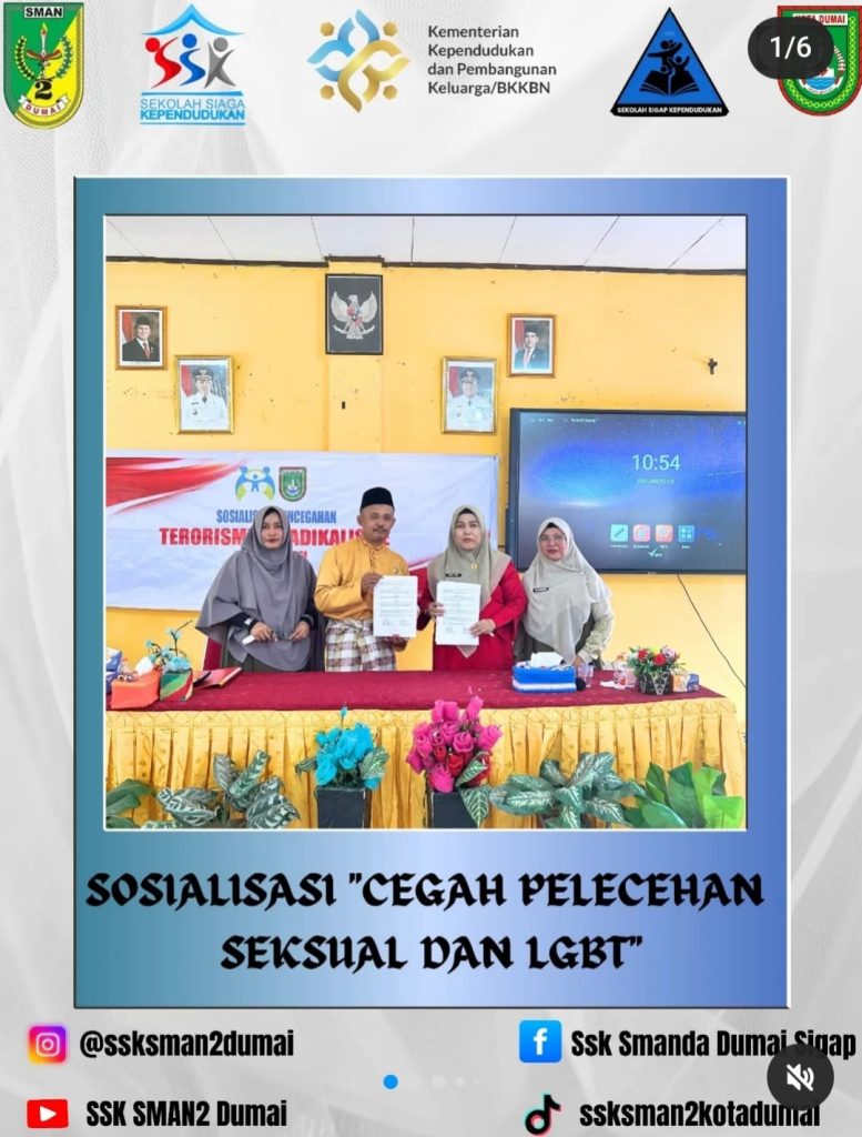 DUMAI , Relawannews.com – 22 /8/2025. SMA Negeri 2 Dumai menerima kunjungan Tim dari Dinas Pemberdayaan Perempuan dan Perlindungan Anak (DPPPA) dalam rangka kegiatan Sosialisasi Pencegahan Pelecehan Seksual dan LGBT. Kegiatan ini bertujuan untuk memberikan pemahaman serta meningkatkan kesadaran seluruh warga sekolah, khususnya peserta didik, mengenai pentingnya menjaga diri dan mengenali potensi tindakan yang mengarah […]