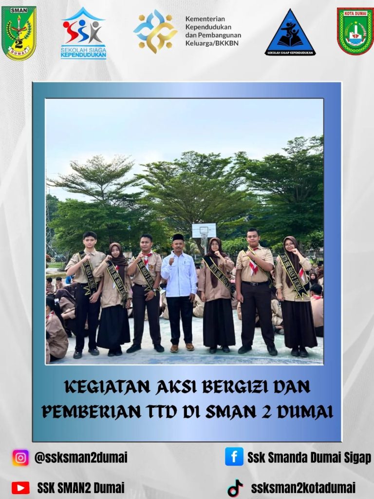 Relawannews.com – Dumai 27 Agustus 2025, SMA Negeri 2 Dumai Bersama Duta SSK SMAN 2 Dumai Menggelar Aksi Bergizi Dan Pemberian Tablet Tambah Darah (Bagi Peserta Didik Perempuan).