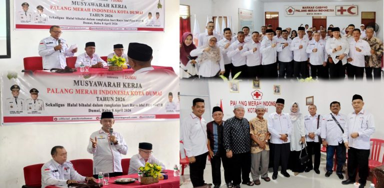 Dumai, 8 April 2026 — Palang Merah Indonesia (PMI) Kota Dumai menggelar kegiatan Musyawarah Kerja (Musker) Tahun 2026 yang dirangkaikan dengan acara halal bihalal bersama Dewan Kehormatan PMI, Pengurus PMI kota, PMI kecamatan, Unit Donor darah, para relawan, serta undangan lainnya.