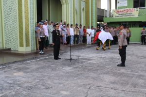 Upacara secara kedinasan Polri tersebut diawali sekitar pukul 17.00 WIB. Bertindak sebagai Inspektur Upacara adalah Kapolresta Pekanbaru Kombes Pol Jeki Rahmat Mustika, S.I.K., Perwira Upacara AKP Viola Dwi Anggreni, S.I.K. (Kapolsek Lima Puluh), dan Komandan Upacara AKP Elfis Remon, S.M. (Kasubbag Binkar Bag SDM Polresta Pekanbaru).